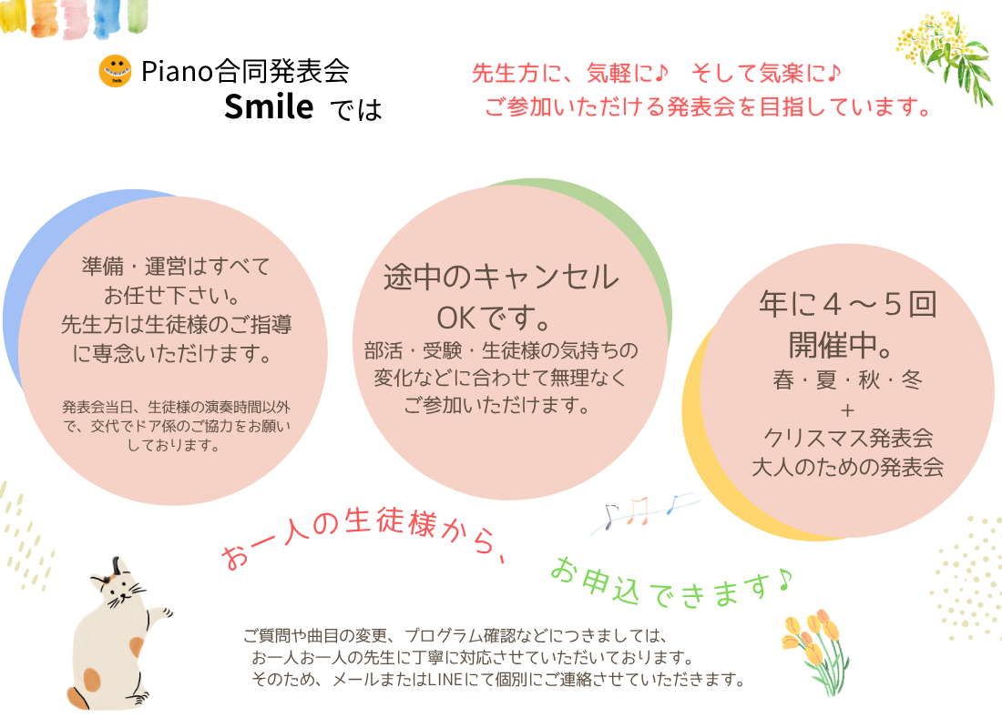 ![]() | ピアノ発表会 Smile LINE登録 参加費や当日までの流れ 参加申込資料など~ 詳細はこちらから確認できます👆 |