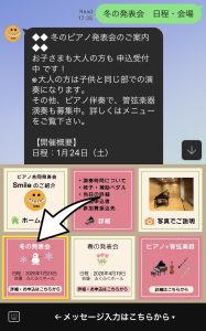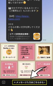 ★下の『メッセージ入力はこちらから』 を押すと、メニューの 表示・非表示 を切り替えられます。
