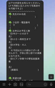 | 4ヶ月前 | 曲目提出 (曲目が決定していない場合は名前・学年のみ提出。決まり次第でOK✨) |