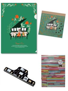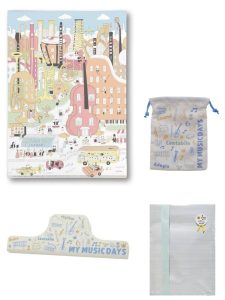 記念品は、年齢や性別に合わせ、レッスンバッグや楽譜フォルダー、文具セットなど、レッスンや日常で使える便利なアイテムを心を込めて選んでおります。